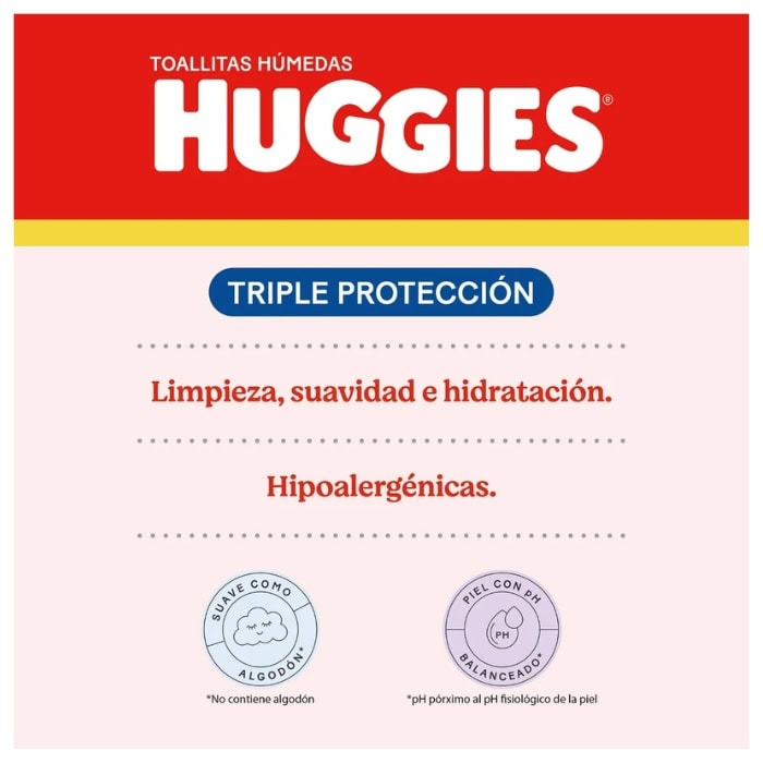 Las Toallitas Húmedas Huggies Limpieza Cotidiana 288 Unidades proporcionan una limpieza suave y efectiva para la delicada piel de tu bebé. Enriquecidas con ingredientes hidratantes y calmantes, estas toallitas son hipoalergénicas y dermatológicamente testeadas, garantizando seguridad y confort en cada uso. Libres de alcohol, parabenos y phenoxyethanol, son ideales para el cuidado diario.